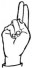 На ћирилици написано ТЕОФАН МИЛОРАДОВИЋ састоји се из 17 слова [?]. Исписано ћириличном једноручном азбуком за глувонеме: